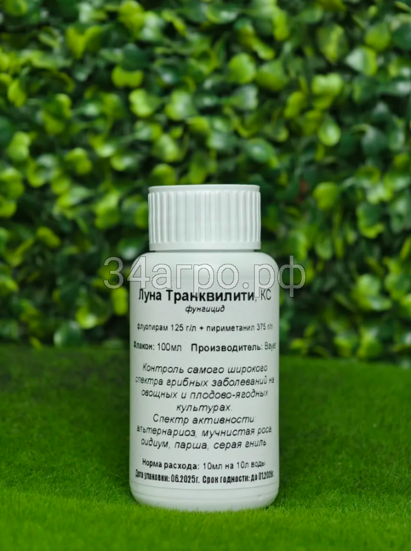 Луна транквилити - это новый системный двухкомпонентный фунгицид широкого спектра действия от компании Bayer.  Применяется на овощных, плодово-ягодных культурах и винограде от широкого спектра грибковых болезней. На винограде может использоваться для борьбы с оидиумом, серой и белой гнилями, антракнозом, альтернариозом.